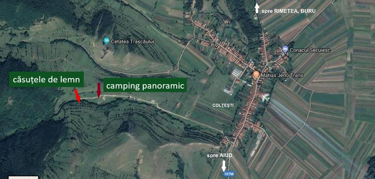 Varianta 2: Autobus până la Aiud în stația Cetate/Pompieri + microbus din stația de pe str. Avram Iancu (vis-a-vis de Școala Generală Ovidiu Hulea) până în centrul satului Colțești + plimbare 20 min. până la camping (sau te transportăm noi cu mașina, dacă ne suni din timp și programul ne permite)